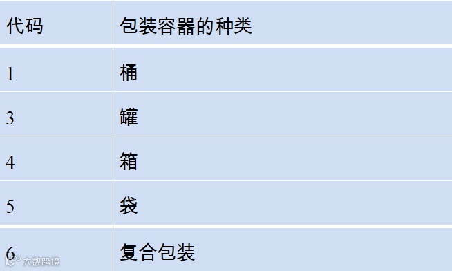 包装代码第一部分 阿拉伯数字,表示包装容器的种类。 |