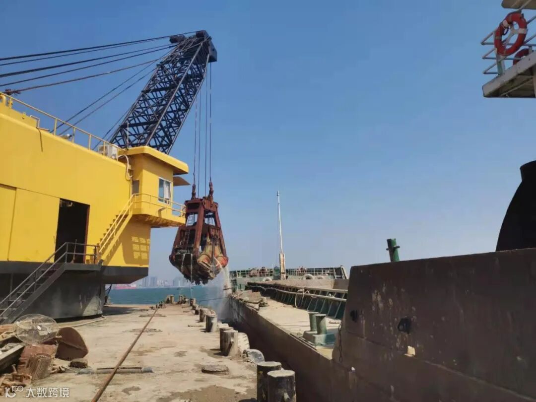 ▲抓斗船一斗约16立方米,可装满一泥头车