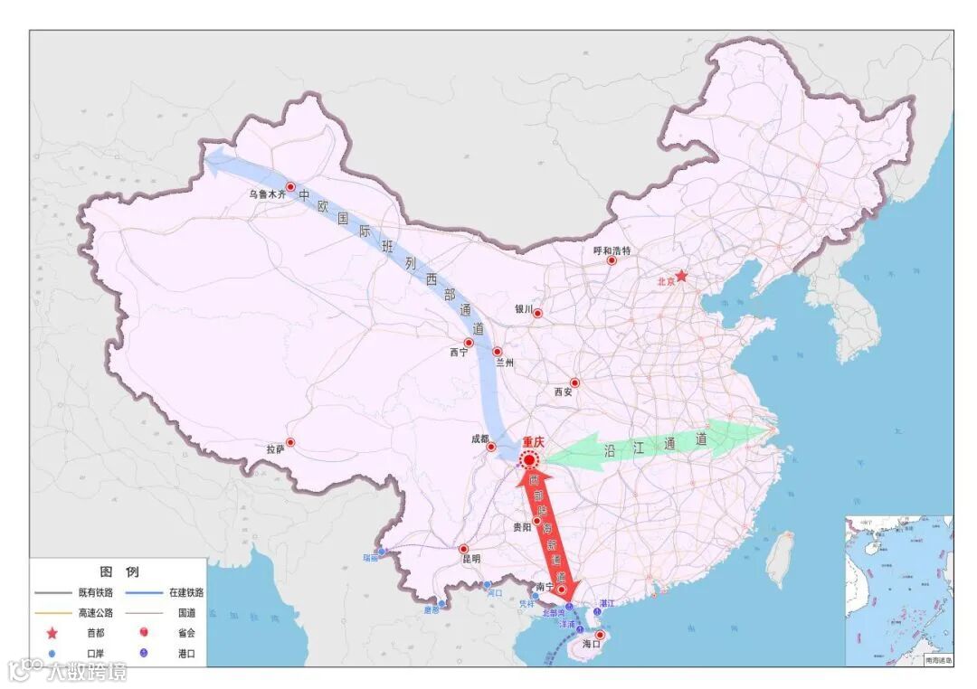 近年来,重庆、广西等西部省(区、市)积极参与共建“一带一路”,加强与新加坡等东南亚地区国家经贸合作,中新互联互通项目持续推进,通道建设取得积极成效。基本形成重庆、成都分别经贵阳、怀化、百色至北部湾港(钦州港、北海港、防城港港)的三条铁路运输线路,实现集装箱班列每日开行,并与中欧班列保持有效衔接;初步形成至中南半岛的跨境公路班车和国际铁路联运等物流组织模式.