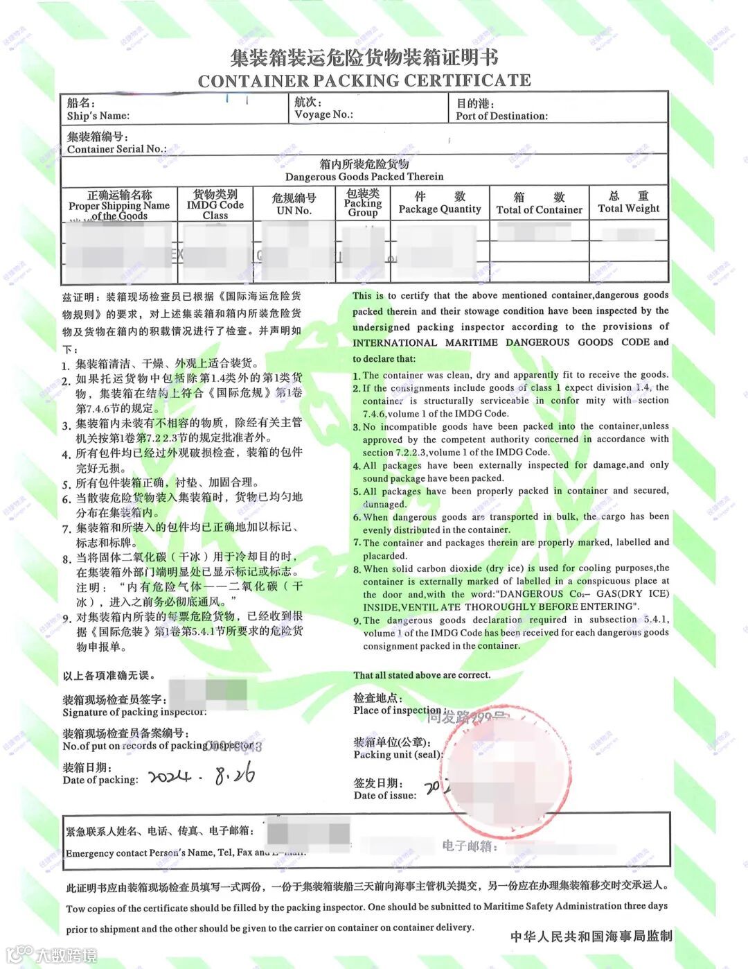 三.出境危险货物运输包装使用鉴定结果单(tips 电子危包证需打印加盖使用人公章)
