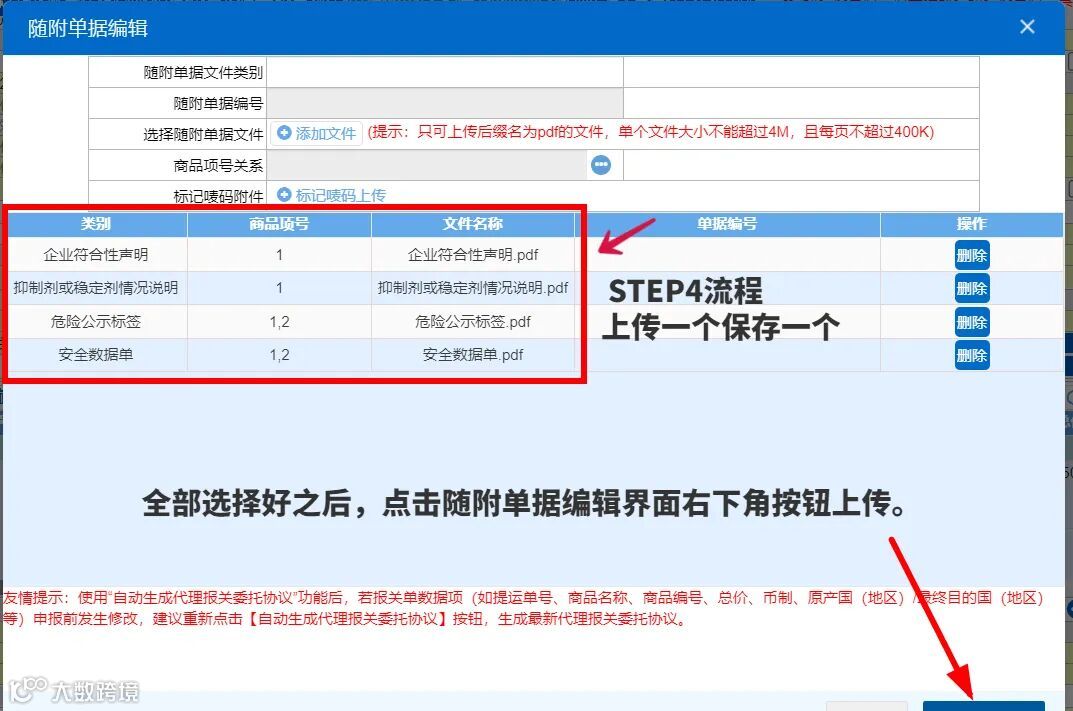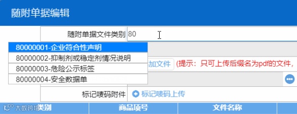 Tips:目前一份随附单据不能勾选对应多个商品项号哦,只允许一对一,否则会退单!