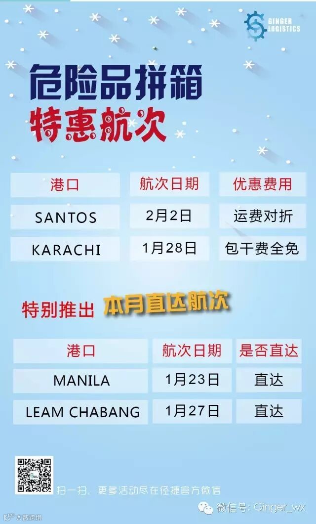 导读:一月危险品拼箱特惠航次及特别推荐直达航次,赶快联系我们订舱吧~