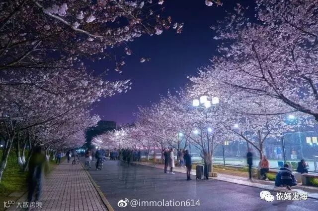 到了晚上,夜樱更是美得犹如动画片里的场景,让人心醉神迷~