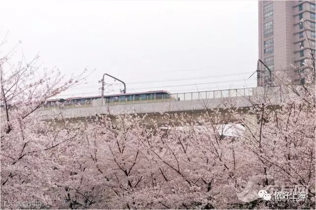 地铁列车在无数樱花的映衬下驶过,这画面美得就像偶像剧,哈哈~
