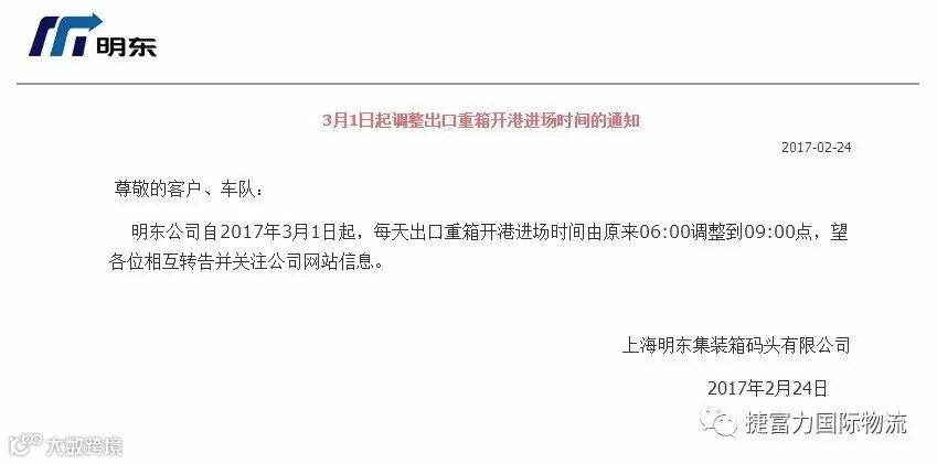 导读:3月1日起调整出口重箱开港进场时间的通知