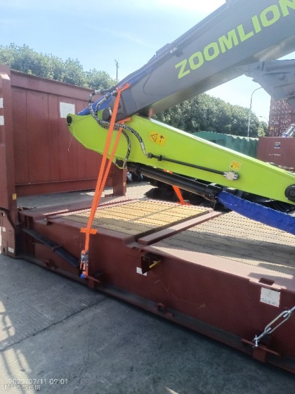 已出运的车辆包括三一/中联/山河等,车型包括ZOOMLION BOOM KIT K36X-5Z, K38X-5RZ, KIT K40X-5RZ, K43X-5RZ, K49X-6RZ, K50X-6RZ / SANY TRANSIT MIXER SY412C-8, SY215C, SY215C LC, SY305C LC, SY335C LC, SY408C-8FBEV 等。一天内可同时完成25+车的捆扎,装车,送港。