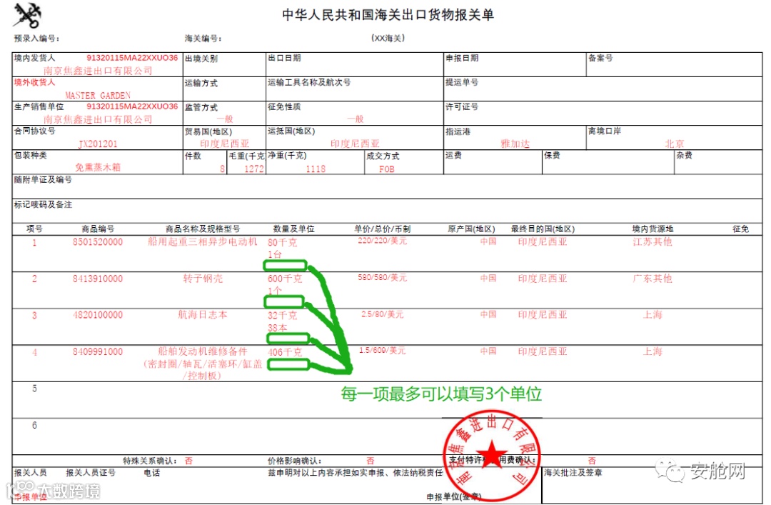 就以上格式,按出运实际货物信息填写,有几个地方需注意一下!