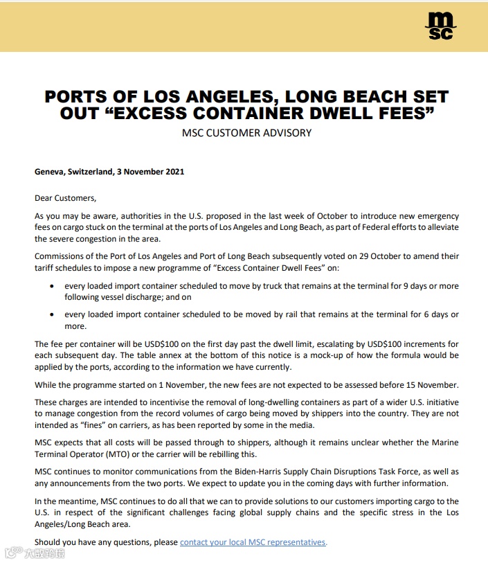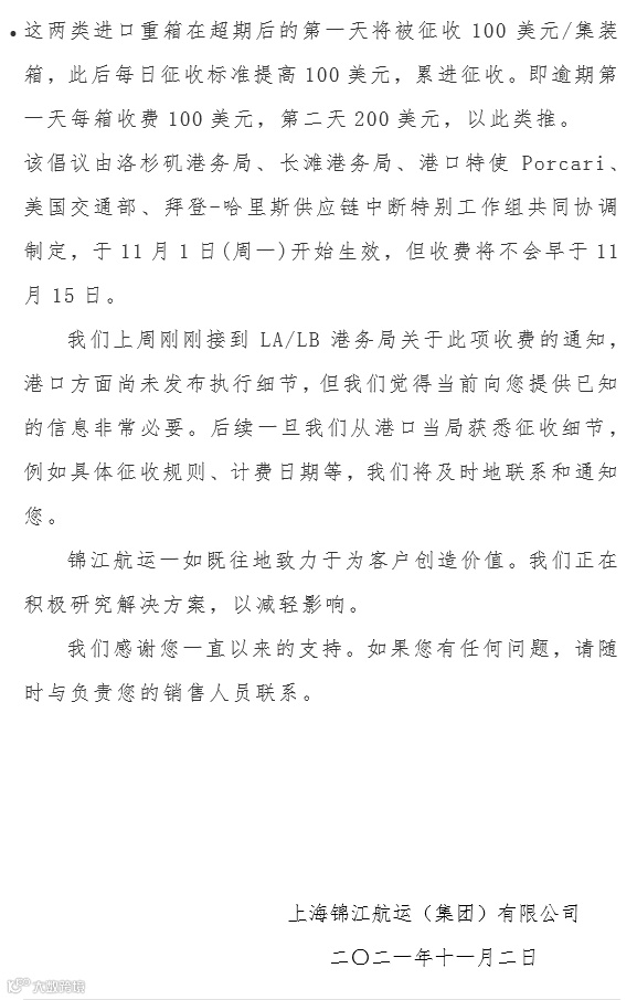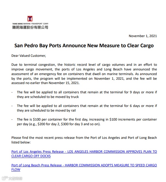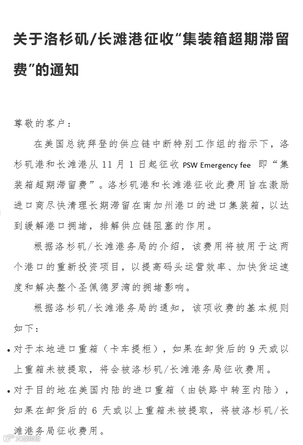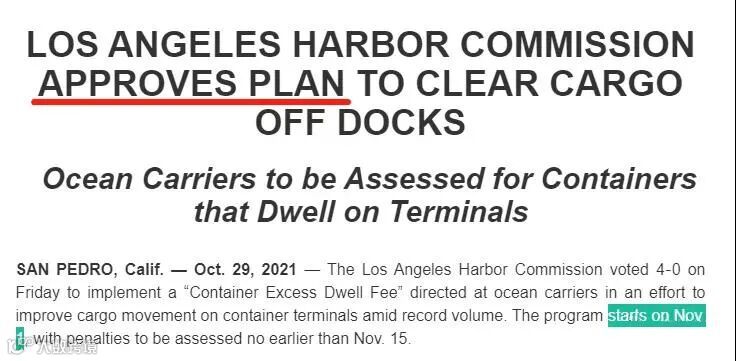 由美国总统拜登的供应链中断特别工作组推动的一项针对洛杉矶和长滩港的“集装箱超额滞留费”,11月1日已正式开始实施!