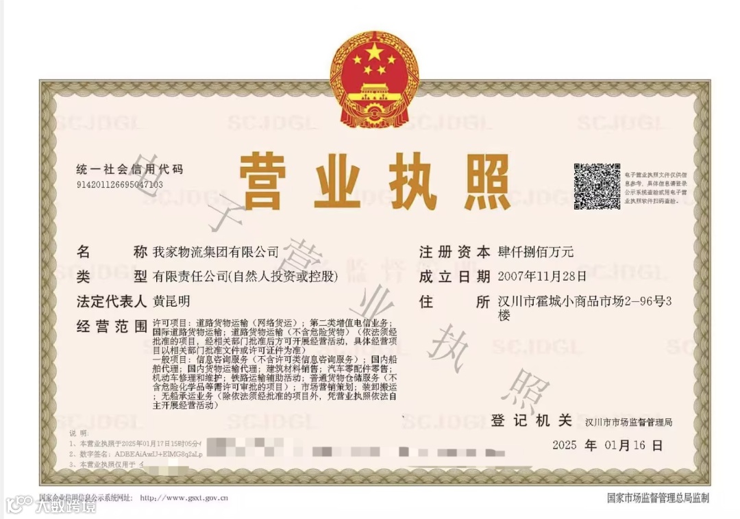 湖北我家物流服务有限公司经过不懈的努力与稳健的发展,于2025年1月16日迎来了历史性的跨越——全面升级为全国型集团公司,并更名为“我家物流集团有限公司”!从地方走向全国,不仅是地域的跨越,更是梦想与责任的升级。我们将以全新的面貌,迎接更广阔的市场挑战。
