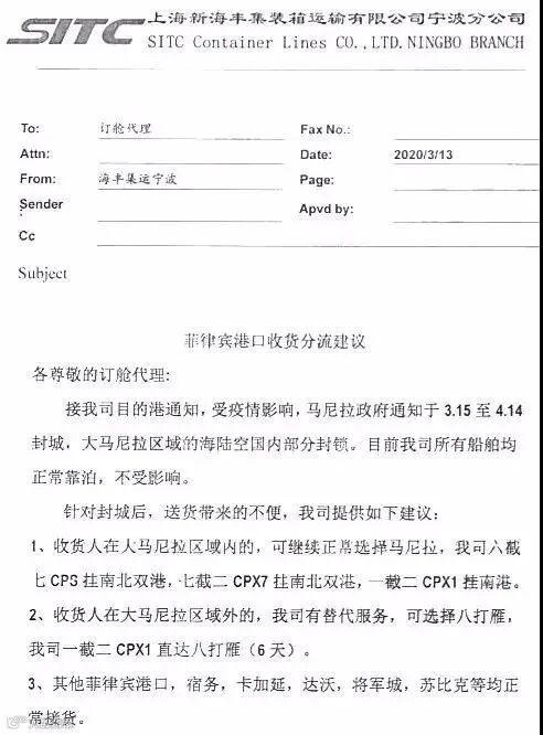 其他菲律宾港口,宿务、卡加延、达沃、将军城、苏比克等则正常接货