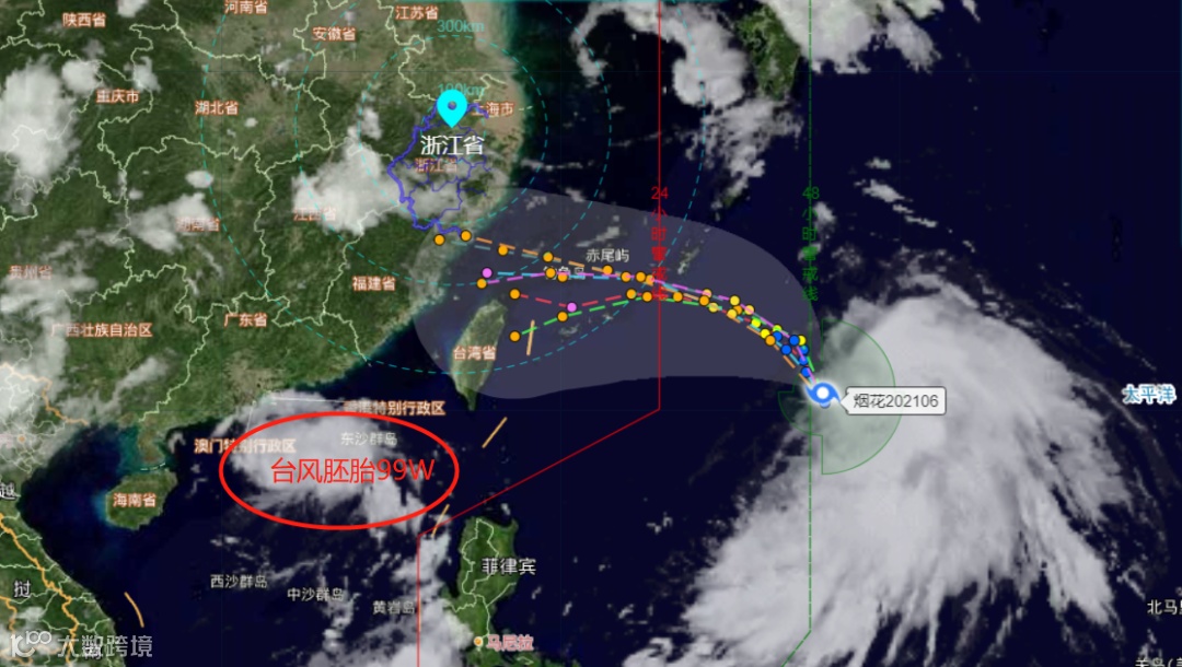 请注意!今年第6号台风“烟花”(英文名称:In-Fa;名字来源:中国澳门;名字意义:烟花),已于7月18日凌晨2点钟在西北太平洋洋面上生成,预计本周末在闽浙登陆。此外,04号热带低压强度逐渐加强,有可能发展为今年第7号台风;逐步向广东海南靠近,预计20日晚上登陆。由于受准“双台风”影响,闽浙及珠三角和长三角的货代和货主注意了!