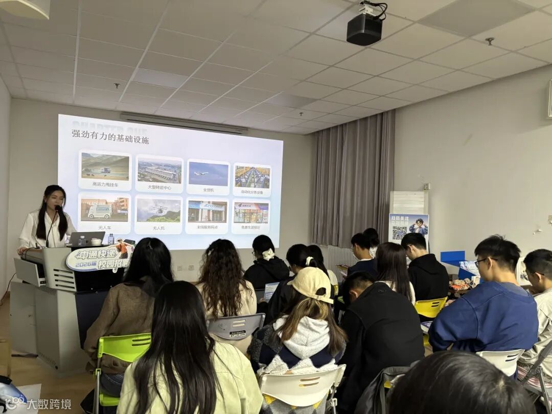 武汉理工大学创业学院的副院长艾靓亲临宣讲会现场并致开场辞,对中通校招组的到来表示热烈欢迎。艾院长在致辞中充分肯定了中通快递的行业地位,并鼓励学子们把握机会,在现代物流领域实现人生价值。这一暖心举动充分体现了校方对校企合作的高度重视。