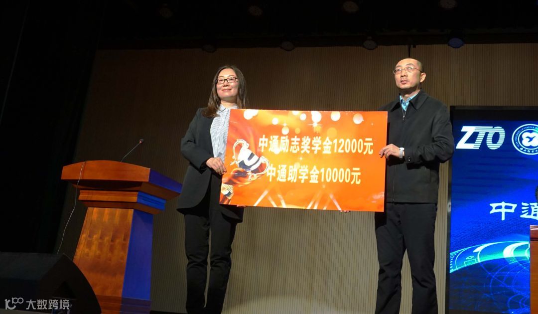 首先,由徐霞总监代表中通快递集团为现代邮政学院捐赠中通励志奖学金12000元、中通助学金10000元,现代邮政学院党委书记郭琪代表学院接受捐赠。随后现代邮政学院副院长谢逢洁宣读了表彰决定及获奖学生名单,台上领导共同为获奖学生颁发了荣誉证书。