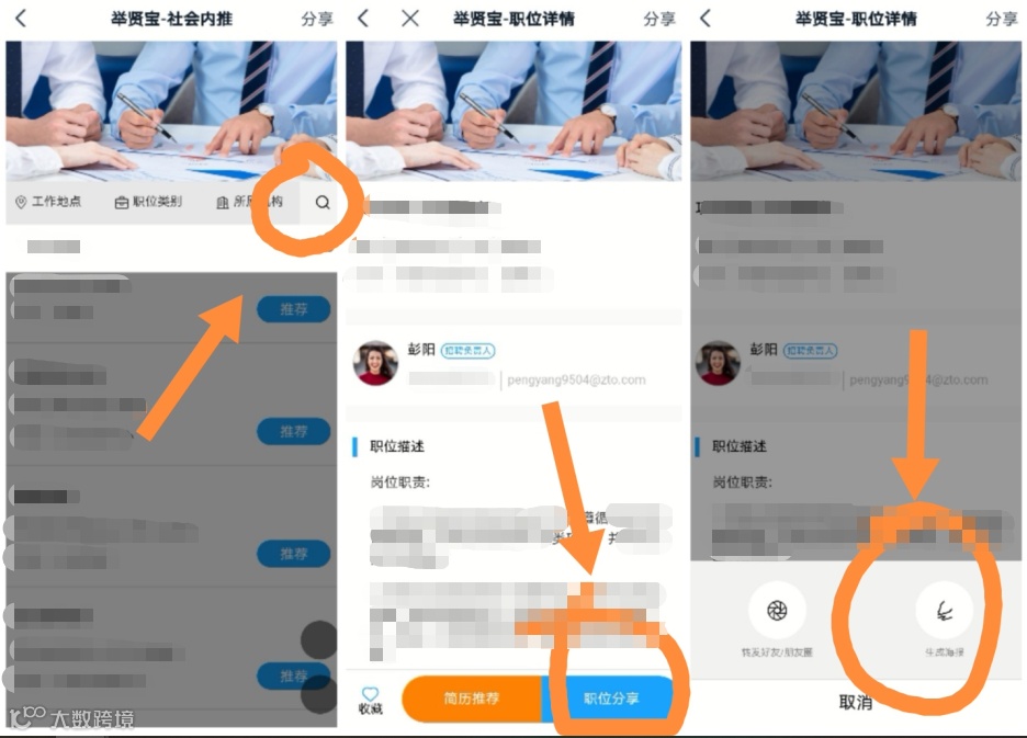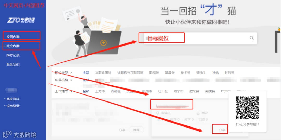 第二步:找到目标岗位,点击”分享“按钮,即可扫码分享职位。