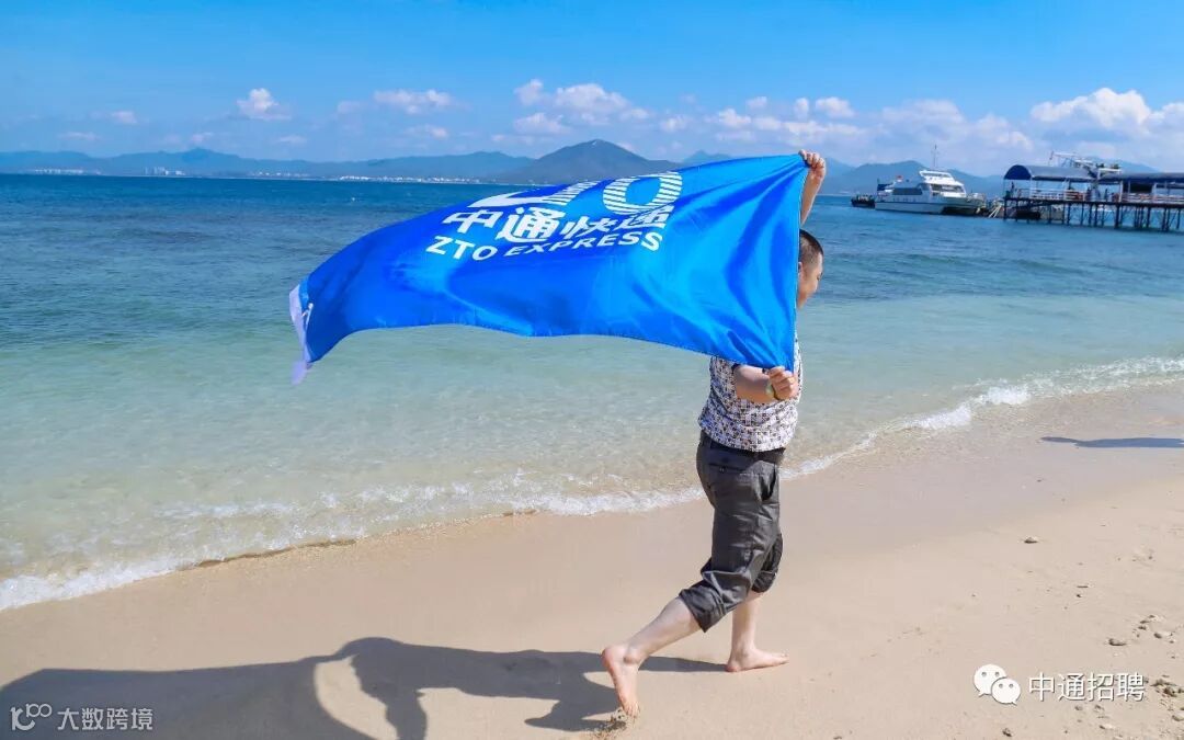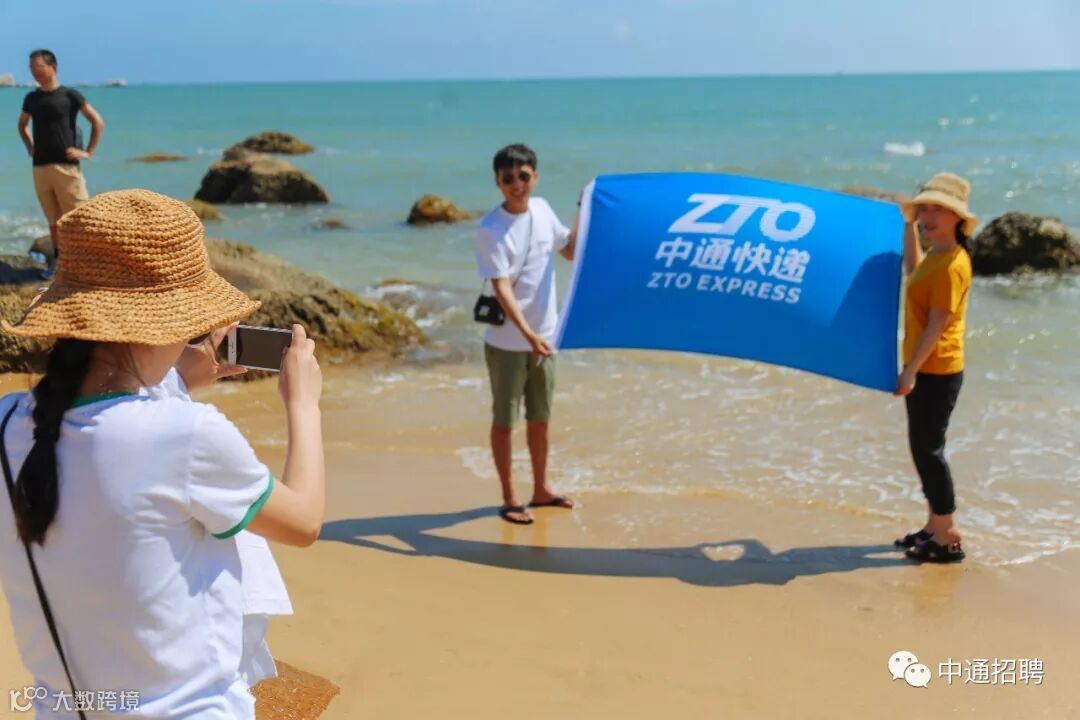 除了和爱人秀恩爱,现场还有人与中通快递的旗帜摆起了造型。