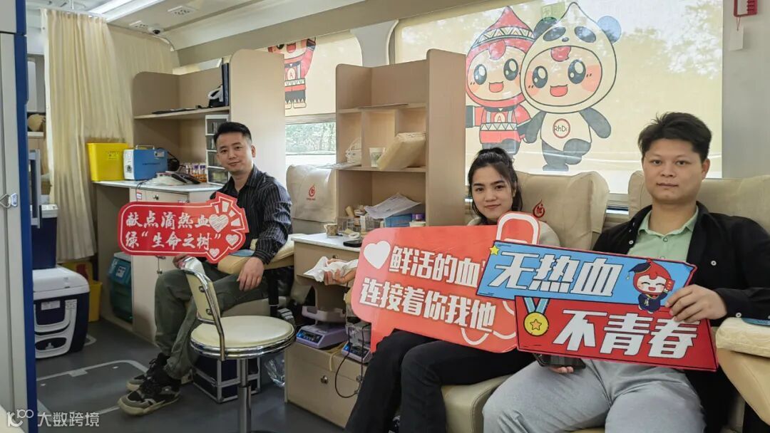 图:潘劲仕、刘亚姑、陈鸿富三位年轻人都是第一次献血