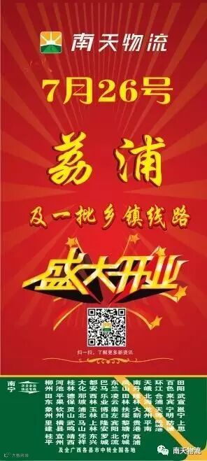 导读:南天物流于2017年7月26日开通:荔浦及一批乡镇线路