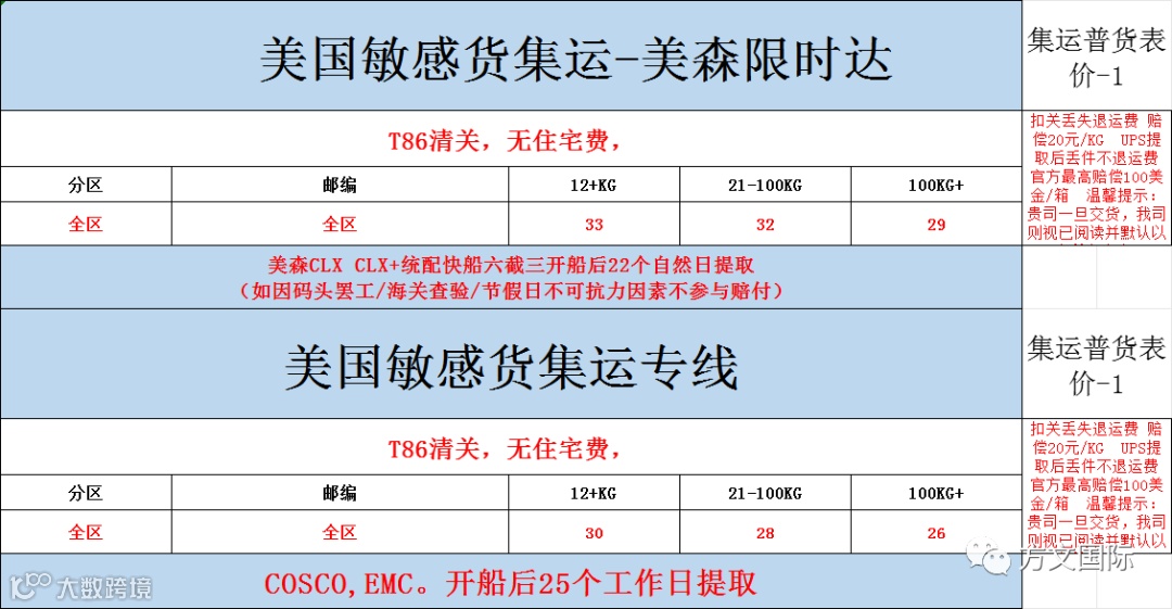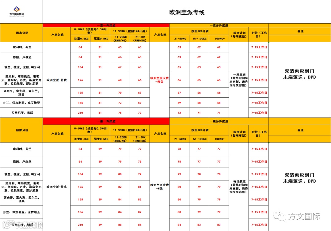 导读:由于航空费,船运,税金,清关费上调,成本上涨,部分渠道做出价格调整,以下是部分最新运费,详情咨询联系客服:
