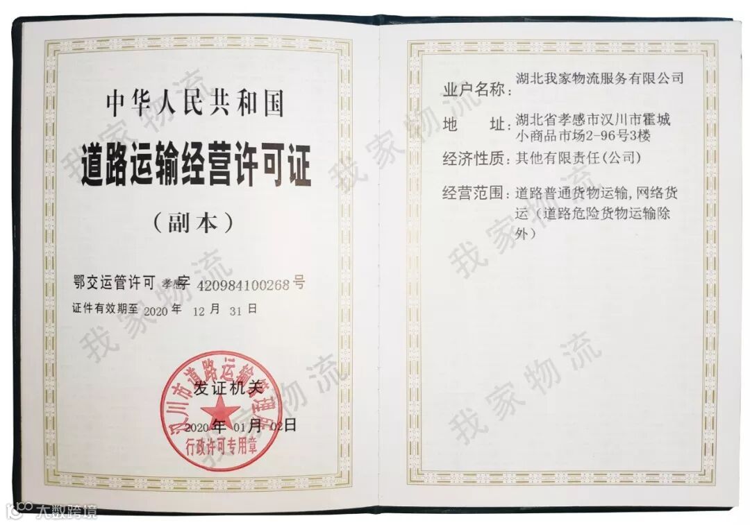 我家物流作为国家首批无车承运试点企业,在2020年的第一个工作日即获得了全国首批网络货运道路运输经营许可证。