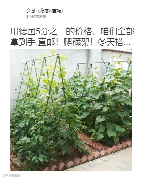 用德国5分之一的价格,咱们全部拿到手。直邮!爬藤架!冬天搭大棚,夏天爬瓜果!葡萄,月季,豆角全拿下!塑包钢管,质量超好!随便拼,任意造型不在话下!架子直径16mm!更结实耐用!(德国市场一般为11mm)