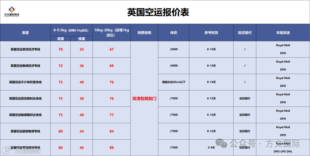 1、英国,加拿大空运新增优化渠道。细分经济路线和限时达路线,以及不计费体积重渠道等2、美国海运按邮编细分价格,英国海运调整重量区间3、英国、加拿大、欧洲空运上调运费 详情咨询联系客服: 13923471315