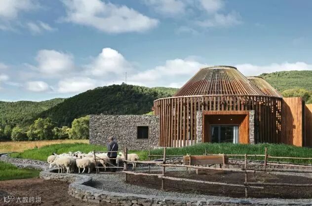 几百亩的草原上都是空旷一片,如何使建筑不违和地融入场所中,是设计团队要面临的一大问题。纠结来纠结去,团队最后决定将蒙古包作为设计主题,既不突兀,也是对传统草原文化的致敬。