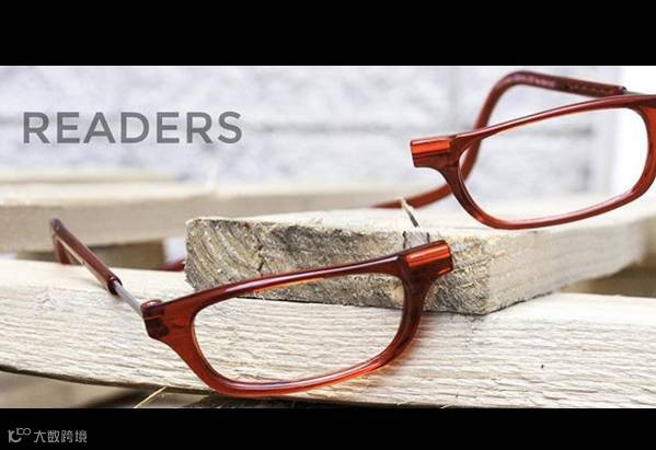 clic readers是美国眼镜公司Exis Eyewear于2000年开发完成的,曾经2次在国际眼镜展上获得视觉选择奖。clic readers外形十分有特色,clic既是中文中“咔嚓”的拟声词,这个眼镜最大的特色是眼睛是中心分体式的。鼻托中心用强力磁石链接在一起,只要轻轻一拆,伴随着“咔嚓”的轻响就可将眼镜分开。十分适合习惯频繁阅读的人群。