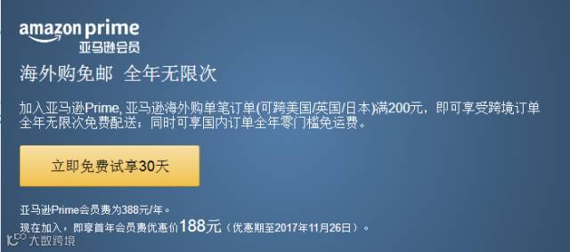 Prime会员的试用期对海淘还是新手的你们来说可是不错的选择,而目前中亚的海外购会员费用在2017年11月26之前还是保持了首年188的低廉价格,非常值得入手啦!