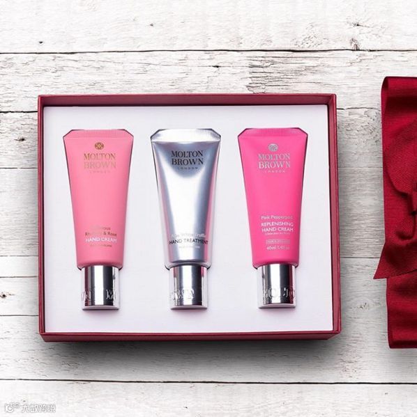 这款MOLTON BROWN拥抱手部护理精美礼盒装,含大黄&玫瑰护手霜40ml、阿尔巴白松露手部护理霜40ml、粉红胡椒手部滋养霜40ml。精美礼盒包装,送人或自用都很不错。