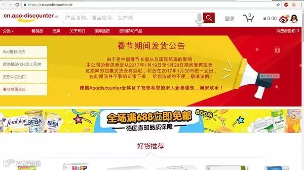2、德国APO药房中文站:https://cn.apodiscounter.de/