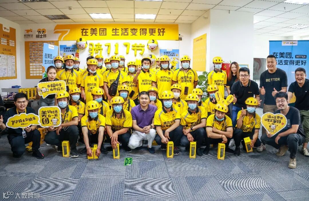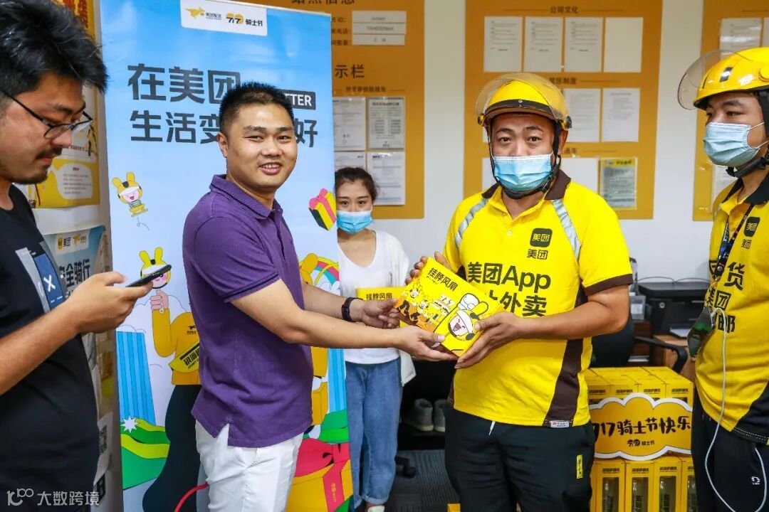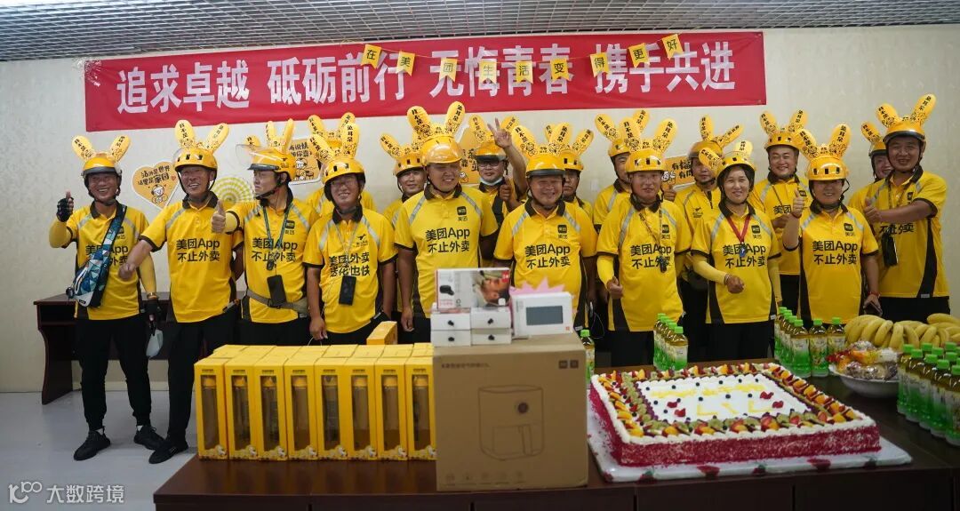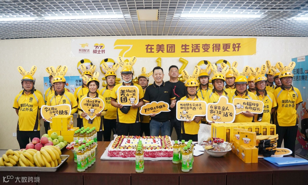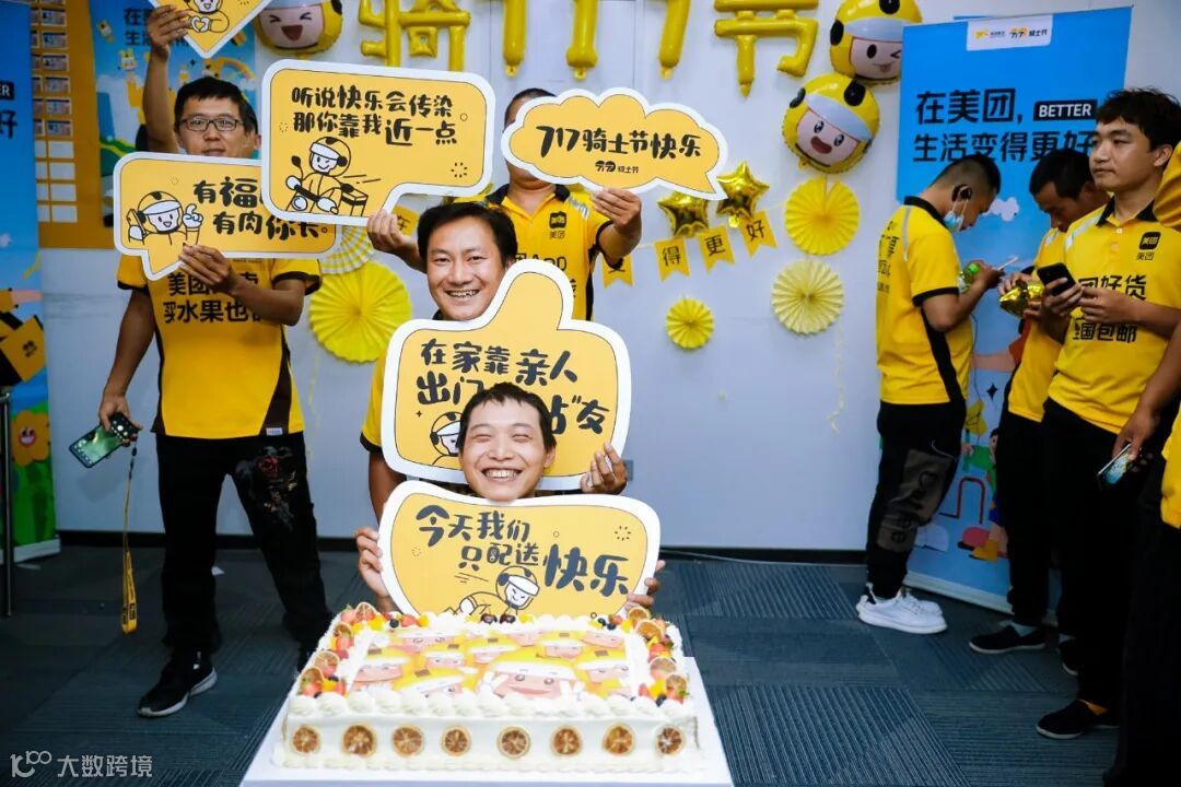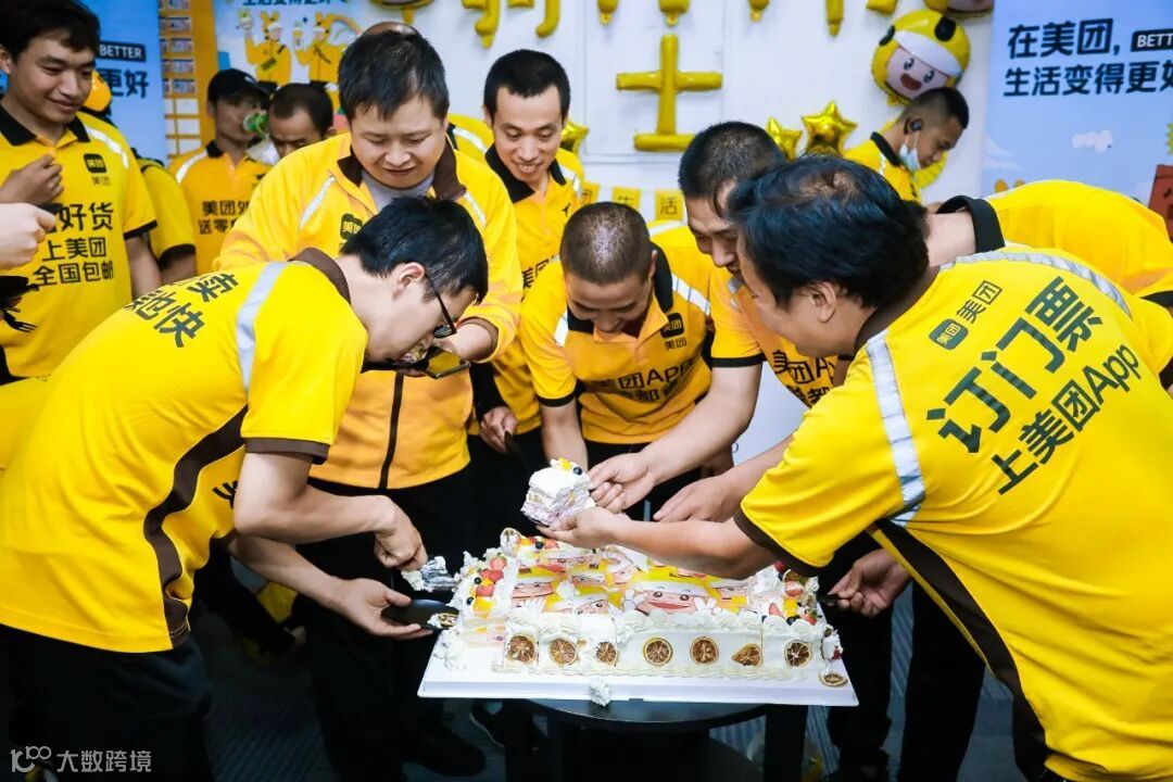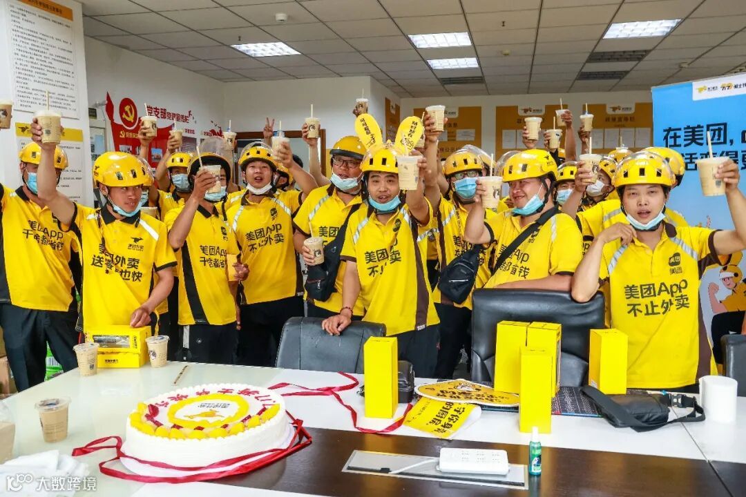在今天这个特殊的日子里,美团高级副总裁、到家事业群总裁王莆中, 美团配送总经理魏巍等也都纷纷去到站点,与兄弟姐妹们一起切蛋糕、做游戏、秀才艺、收礼物、送祝福.......过节的快乐不由地溢出了屏幕。
