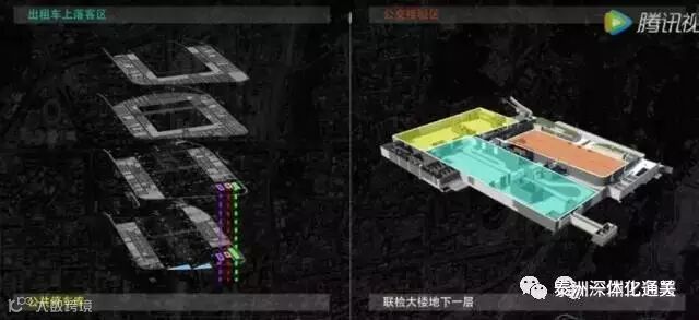 旅客可抵达地下一层,公交接驳区,出租车上落客区,或公共停车库。