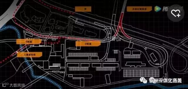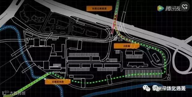 入境货车通过入境货车桥进入货检场地,通过查验后,经货车匝道和东部过境高速进入深圳。