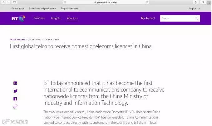 前不久,英国电信官网显示:英国电信已经拿到第一张中国通信运营的牌照,将成为第一家正式进入中国通信行业的外国企业。。。 工信部也正式宣布:英国电信(BT)获得了在中国全国性经营通信的牌照。。。 人世难逢开口笑,上疆场彼此弯弓月,没有压力就没有动力,今夜,中国数十万的移动员工、电信员工、联通员工,或将彻夜无眠了! 而对于我们普通大众来说,市场越是开放,竞争越是激烈,我们所能享受到的市场让利就更大! 1、打破电信垄断。任何一个行业,一旦长期缺乏竞争对手,往往会陷入萎靡不振、死气沉沉。 长期以来,国内IP-VPN服务商品牌只有三大电信运营商:中国移动,中国电信,中国联通。 现在,国家电网、英国电信都杀进来了,中国电信业或将变成五大运营商;不管是手机,还是宽带;都属于这个范围。 它们的闯入,将搅动这一滩死水,增强中国企业的求生欲、创造力和战争精神,进而推动整个行业的持续发展。 2、倒逼提速降费。提速降费,国家已经呼吁了很多次,每一次都是推一推、动一动,重要一点原因,或是垄断让企业没有更大动力,去提速降费。 现在不一样了,真正的竞争对手来了。对于我们消费者来说,我们未来装宽带、换手机信号,完全可以选一个价格更便宜、速度更快的,而不用只在三家巨无霸的圈子里打转。 事实终将证明:市场才是最好的推动器,只有竞争让一些人痛到骨子里,提速降费才能真正到来。 3、打破创新僵局:推动 运营商励精图治,加快创新,让中国的制造业优势,进一步和互联网结合起来。 垄断的行业,就像一只饲养的老虎,就算看着再凶猛,也无法独立生存,更不要提外出捕食。 现在,僵局即将打破。有了新的行业竞争的进入,移动也许将被逼奔跑,中国通信全面爆发,联通或许也将5G火力全开! 打开城门后,我们终将迎来一个浴火重生的中国电信业,中国企业将更加强悍、更有活力,而中国老百姓则将获得更优质的电信服务! 正所谓:置之死地而后生! 四 躺着赚钱的日子,结束了,中国移动最担心的事,终于发生了! 但这一切,或许只是一个开始。电信业作为中国重点开放领域,接下来,不排除会有更多的市场主体,乃至各国电信企业,继续杀入。 这说明:最终不会再有保护了!中国电信业,将像许褚斗马超一样赤膊上阵,真刀真枪,到市场上经风历雨。