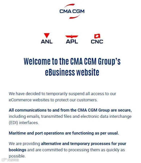9月28日,达飞称,由于内部系统问题,ANL、CNC以及达飞的网站及一些IT应用软件,暂时无法使用。