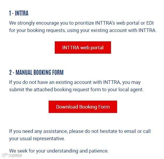 1、强烈建议使用INTTRA账户或EDI,处理预定请求。
