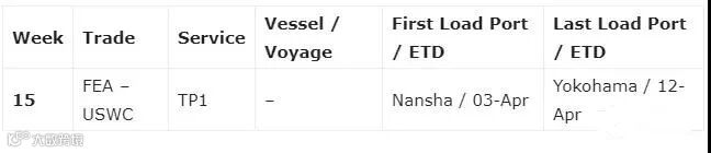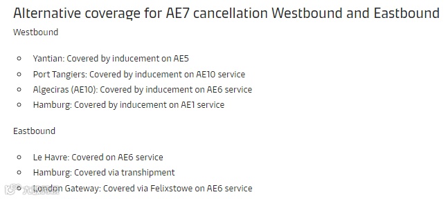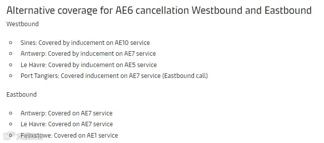 All shipments from Shanghai, Ningbo, Xiamen, Yantian and Singapore will be served via alternative services。