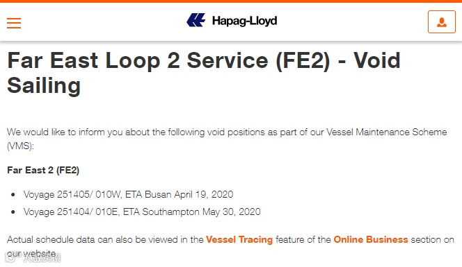 由于Covid-19疫情的影响和预期的需求急剧下降,THE联盟成员:Hapag-Lloyd、HMM、Ocean Network Express (ONE)和阳明决定修改4月份的船期如下: