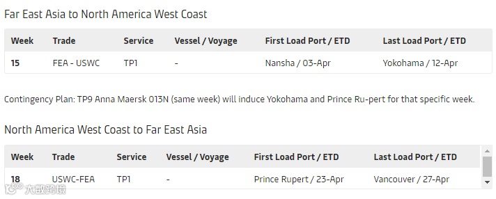 Contingency Plan: TP9 Anna Maersk 013N (same week) will induce Yokohama and Prince Ru-pert for that specific week.