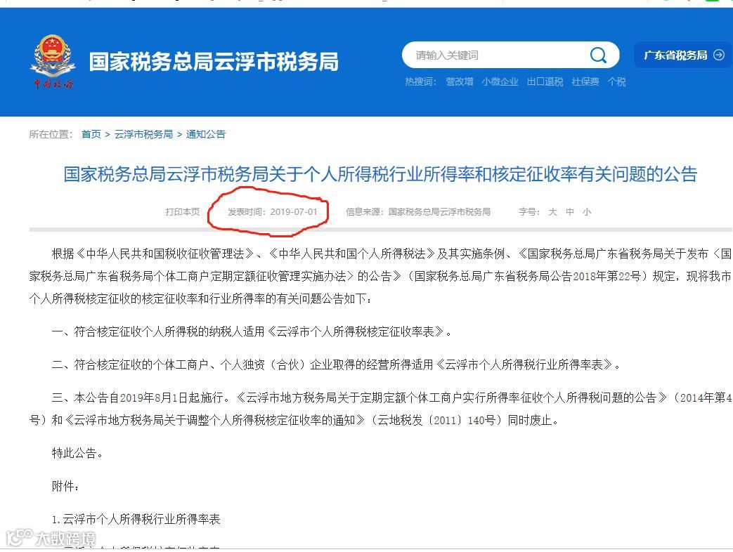 关于《国家税务总局云浮市税务局关于个人所得税行业所得率和核定征收率有关问题的公告》的解读