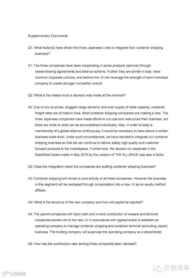 合资公司控股情况占比如下:川崎汽船 31%;三井31%;日邮:38%.