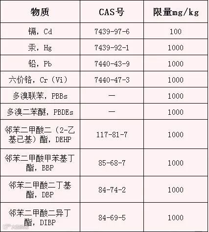 目前,RoHS指令管控了几乎所有在欧盟地区投放的电子电气产品,覆盖了玩具、电器、照明、通讯、医疗设备等产品,限制了以下有害物质: