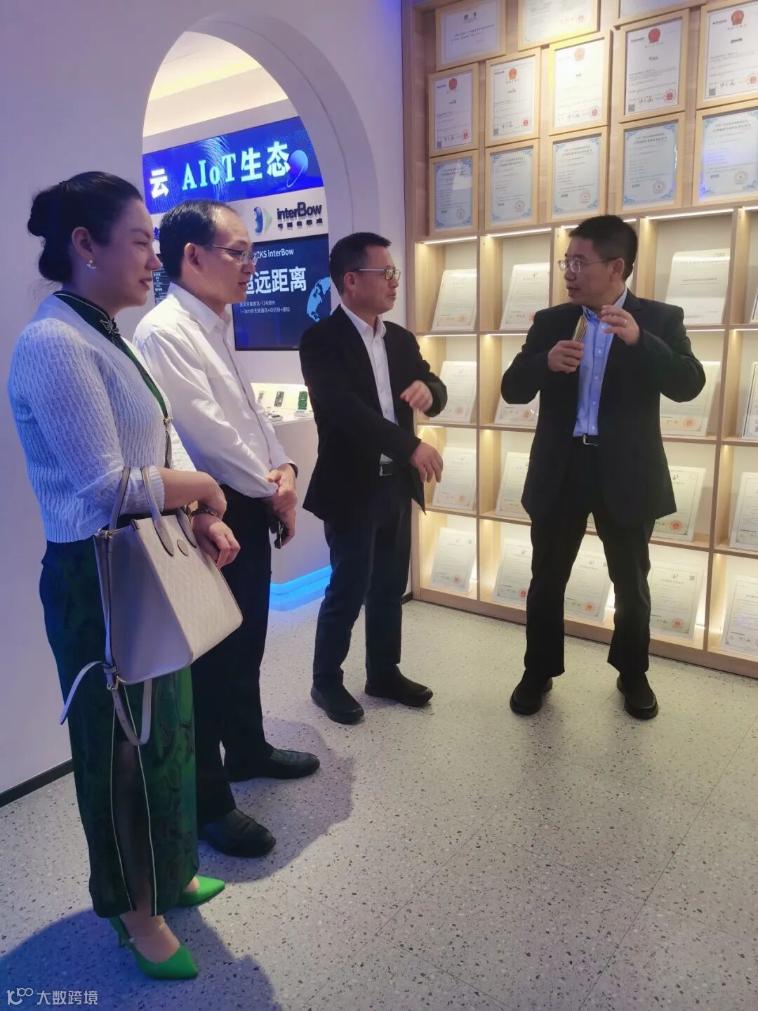 蔡旭东先生向领导们详细介绍了公司的无线通讯技术“interBow”,这是公司自主研发的核心技术,它支撑着洲斯物联的操作系统和传感器技术,为医药物流、食品冷链、环境监测等多个领域提供智能化解决方案。这一技术以其低功耗、远距离、广范围、强穿透力等特点,为洲斯物联的产品提供了强有力的技术支撑。