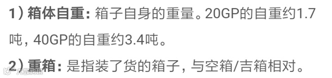 2)超重:一般是指所装货物吨位超过了集装箱的限重。