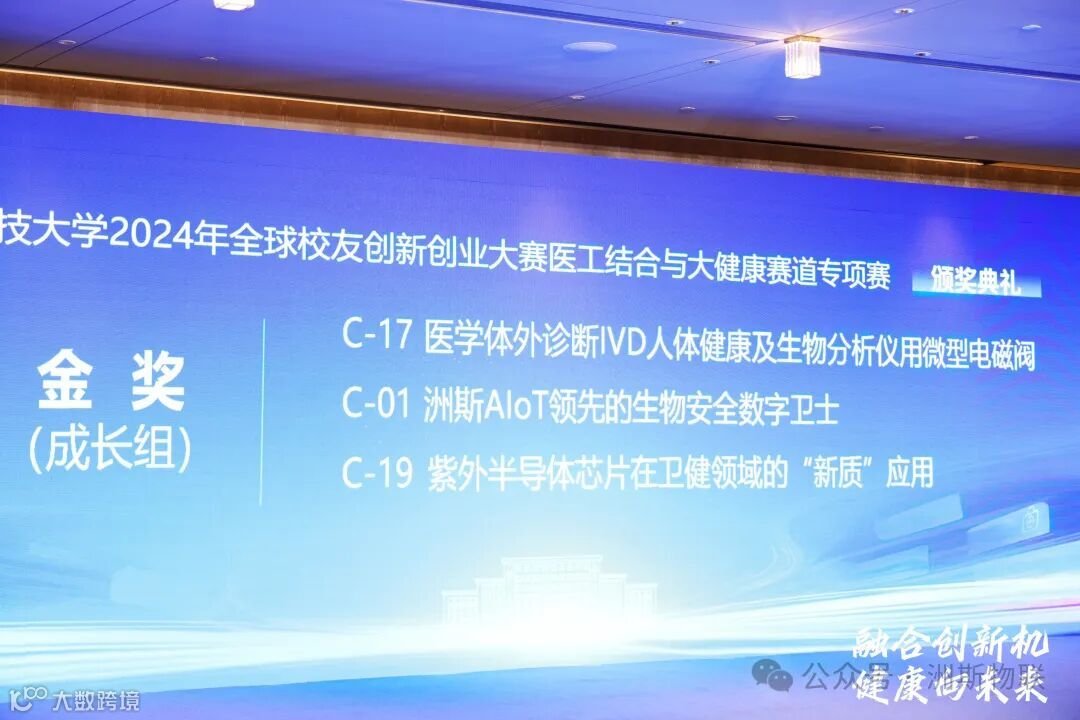 7月13日,“洲斯AIoT领先的生物安全数字卫士”项目,斩获华中科技大学“2024年全球校友创新创业大赛”医工结合与大健康赛道总决赛的金奖!湖北省科技厅副厅长夏松师兄给我司董事长蔡旭东先生颁奖。