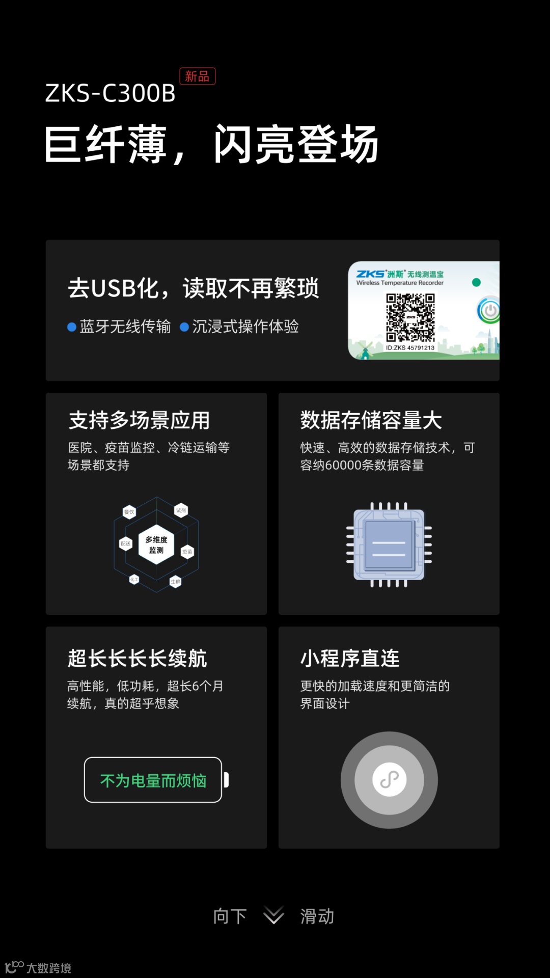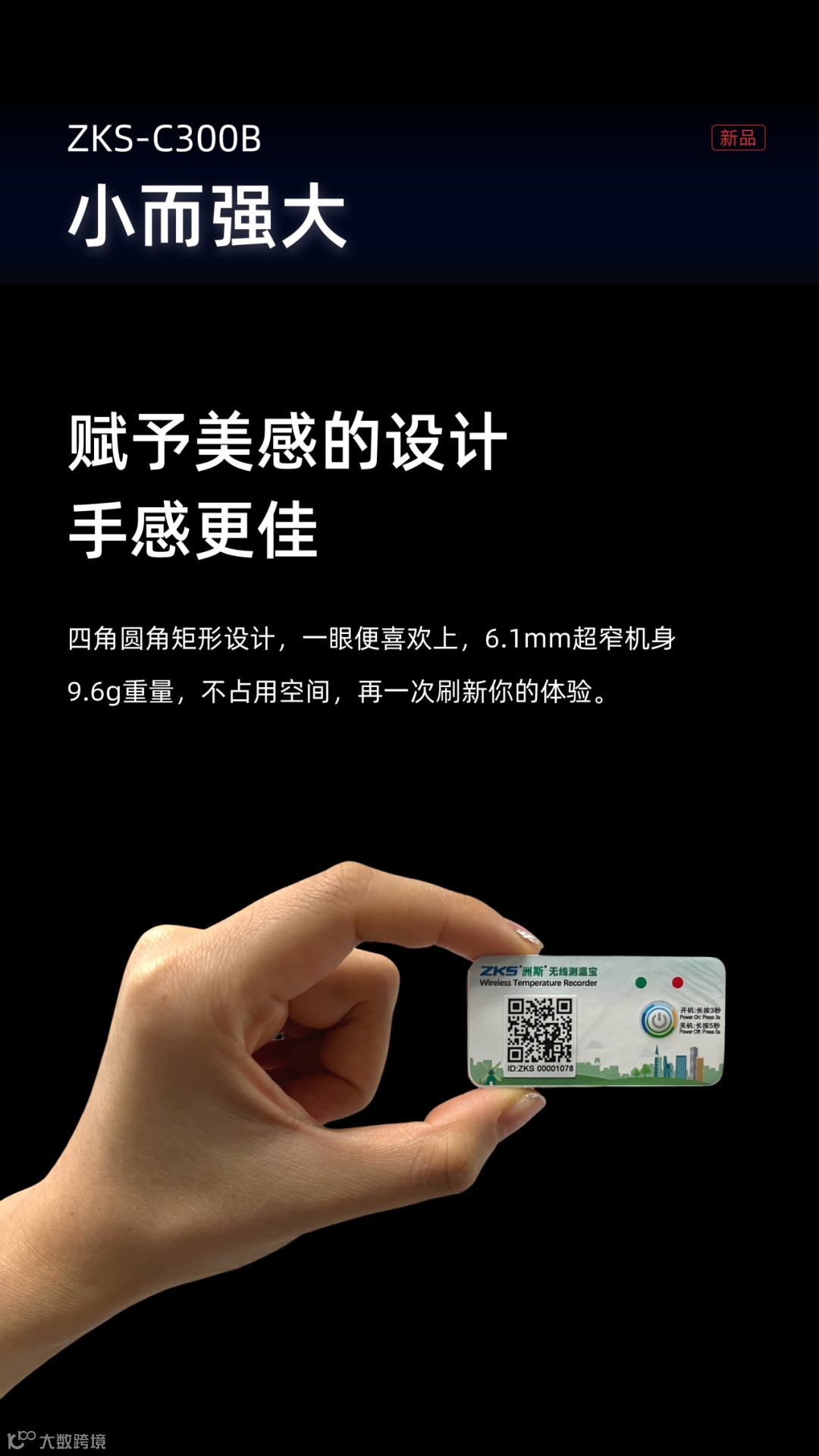 展会现场,洲斯物联新产品——洲斯®无线测温宝吸引客户留足,该设备轻薄,重量仅9.6g,替代了传统USB插入式读取报告的形式,无需依赖电脑,手机蓝牙便捷连接,支持快速生成数据报告,具有6个月以上的续航寿命。适用于IVD试剂、疫苗运输、冷冻品、餐饮配送、生鲜食品等多场景下的便捷式运输。