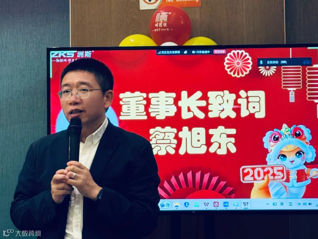洲斯物联董事长蔡旭东的致辞,是一部精彩的年度回顾与展望大片。他用沉稳而有力的话语,深情回顾了过去十年公司的发展历程,从技术到产品,从产品到市场,从市场到客户,从创业合伙人,再到新入职的员工,每一位都被董事长提及,字里行间都饱含着对全体员工及客户的诚挚感谢与对新年的殷切祝福。