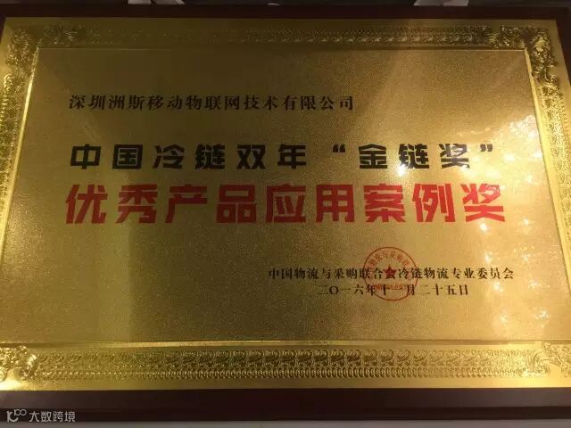 11月25日,中物联冷链委副秘书长李胜先生主持了第四届中国冷链双年金链奖颁奖典礼。洲斯物联获得“优秀产品案例奖”,获得金链奖的单位还有京东物流、星巴克、上海冰熊、顺丰速运等