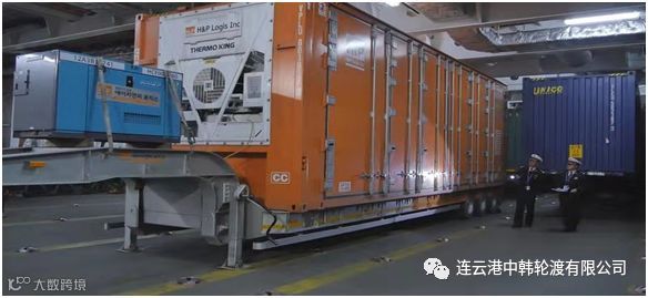 下午17点时许,随着“和谐云港”舱门缓缓开启,终于迎来了这批尊贵的“客人”—无锡海辰半导体温控箱。这意味着HYNIX M8工厂搬迁陆海联运甩挂运输业务正式启动。