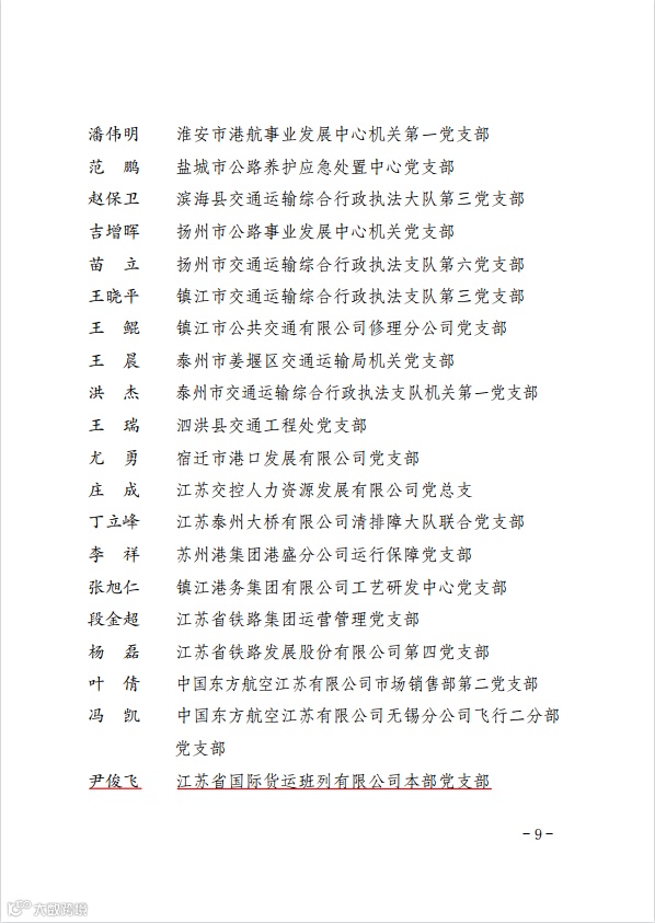 近日,省交通运输行业党委下发《关于通报命名全省交通运输现代化示范区建设先锋队暨党建引领“四个在前”标兵党支部和全省交通运输现代化示范区建设擎旗手暨党建引领“四个在前”标兵个人的通知》(苏交行党字〔2022〕1号),江苏省国际货运班列有限公司本部党支部获评2021年度全省交通运输现代化示范区建设先锋队暨党建引领“四个在前”标兵党支部称号,省班列公司本部党支部书记尹俊飞同志获得2021年度全省交通运输现代化示范区建设擎旗手暨党建引领“四个在前”标兵个人称号。